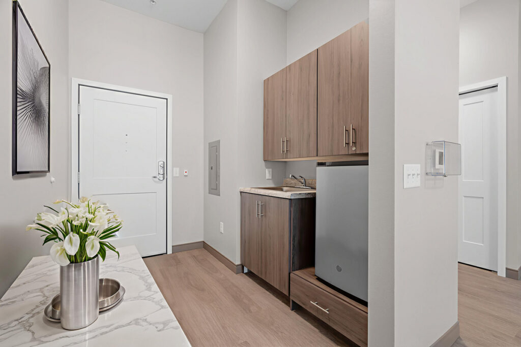 Apartments at Meadowview of Johnston are well-designed and equipped for Independent Living and Assisted Living, with full kitchens and spacious rooms. Memory Care is warm and welcoming, and specially designed for people with memory loss. In memory care, suites and community spaces are well-organized and home-like, with a calming, reassuring atmosphere throughout.