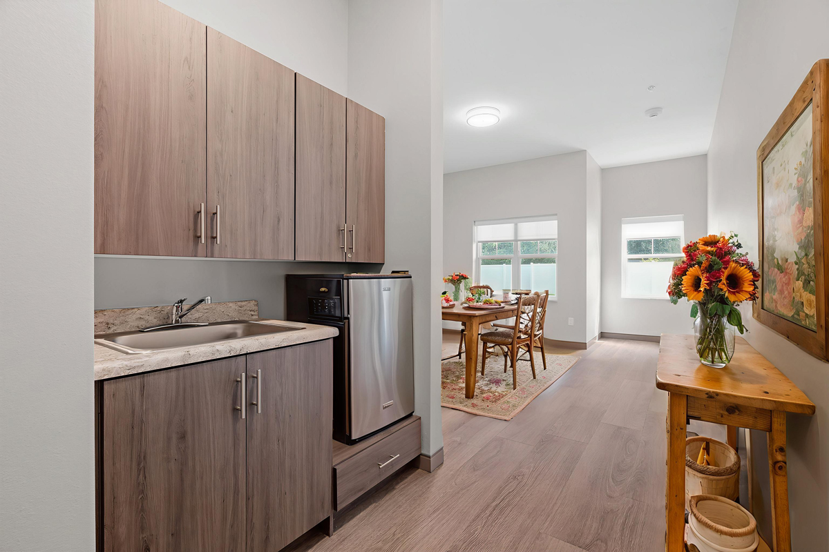 Memory care offers home-like suites and welcoming common spaces specially designed for those with memory loss. The first-floor location features a secure outdoor courtyard and many windows to let in natural sunlight.